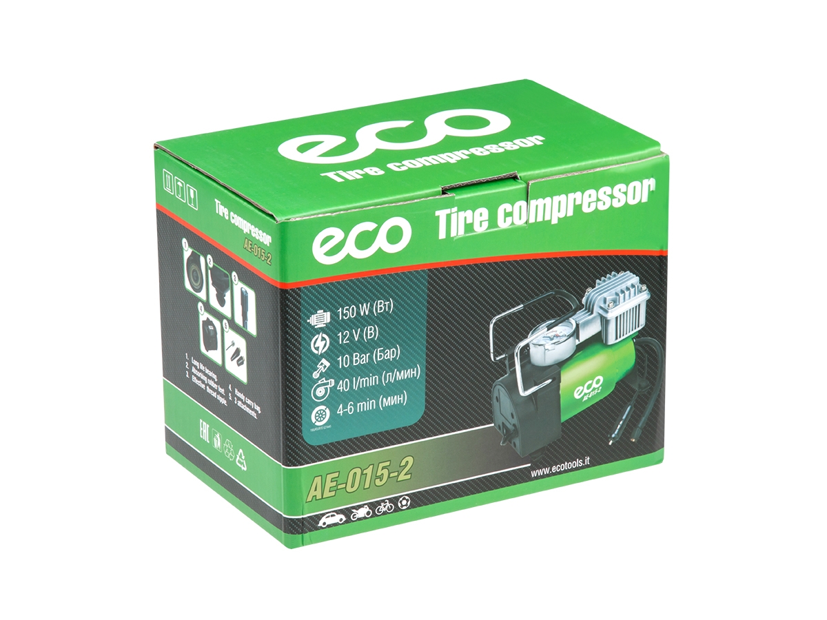 Компрессор автомобильный ECO AE-015-2 (40л/мин, 10bar, 150Вт, 12В) (12В, 150Вт, 10bar, 40л/мин, сумка)
