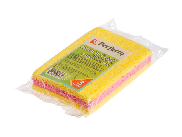 Губки кухонные целлюлозные, 3 шт., 140х100х10 мм, PERFECTO LINEA