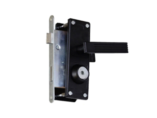 Замок врезной с дисковым механизмом устанавливается как на правые, так и на левые двери, толщиной 40-50 мм. Запирание двери снаружи производится автоматически при нажатии на кнопку, а отпирание секретным ключом. Изнутри замок открывается и закрывается постоянным ключом (вертушкой).