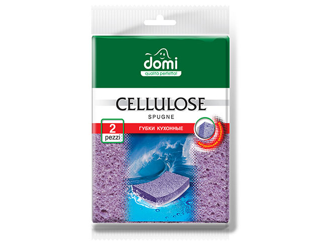 Губки кухонные целлюлозные 2 шт DOMI (Состав: целлюлоза- бежевая, фибра- белая. Размер губки: 114х68х22мм)