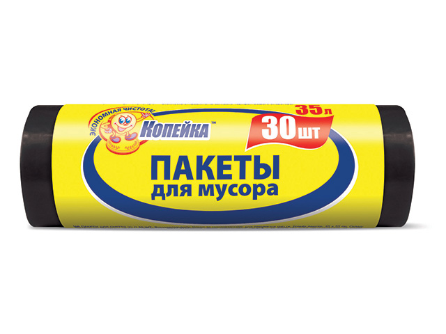 Пакеты для мусора 35л/30шт КОПЕЙКА (Материал: LDPE. Цвет: чёрный. Размер: 45*55 см. Толщина: 7,0 мкм. Тип дна: звезда) купить в Минске: