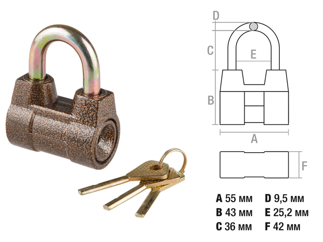 Габариты, мм: A 55, B 43, C 36, D 9,5 E25,2 F42;