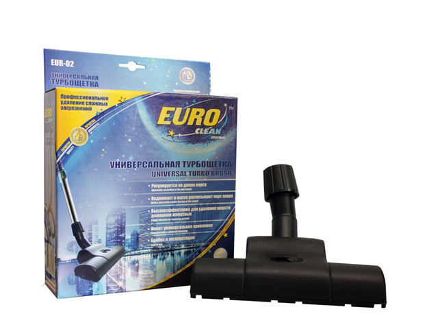 EUROCLEAN EUR-02 Турбощетка предназначена для чистки сильно загрязненных покрытий. Обеспечивает эффективную обработку поверхности, профессиональное удаление сложных загрязнений и шерсти домашних животных. Универсальна для всех типов пылесосов. Снабжена универсальным зажимом, позволяющим крепить ее на большинство моделей пылесосов c диаметром трубки от 27 до 37 мм.