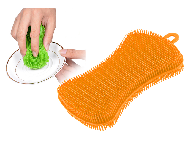 Долговечная силиконовая губка деликатно очищает посуду с антипригарным покрытием и в то же время с легкостью справляется с засохшими загрязнениями.