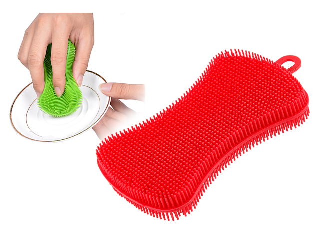Долговечная силиконовая губка деликатно очищает посуду с антипригарным покрытием и в то же время с легкостью справляется с засохшими загрязнениями.