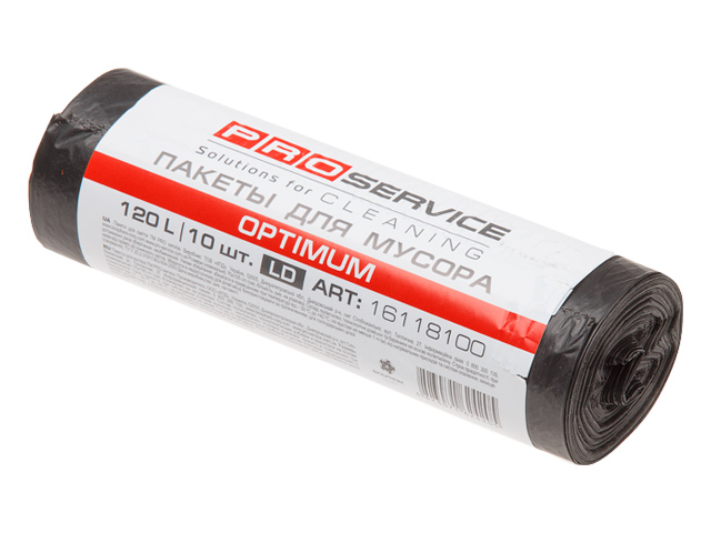 Пакеты для мусора Optimum, 120 л, 10 шт., черные, PROservice (Размер единицы: 70 х 105 см.Толщина: 20 мкм.)