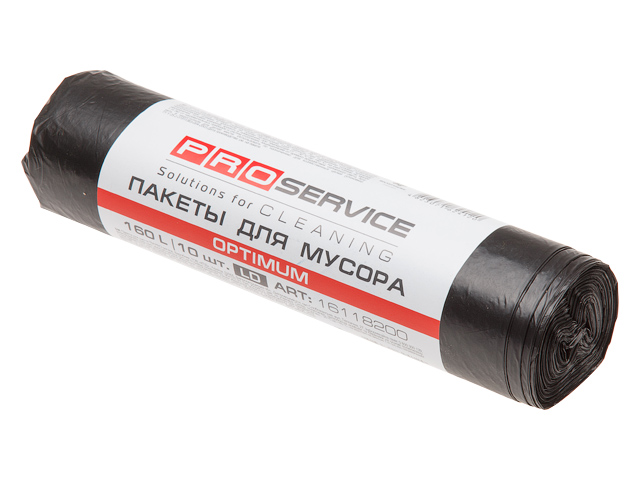 Пакеты для мусора Optimum, 160 л, 10 шт., черные, PROservice (Размер единицы: 90 х 110 см.Толщина: 22 мкм.)