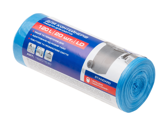 Пакеты для мусора Standard, 120 л, 20 шт., синие, PROservice (Размер единицы: 70 х 109 см.Толщина: 21 мкм.)