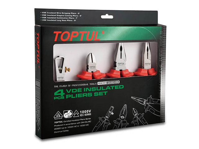Набор бокорезы, плоскогубцы, тонкогубцы, клещи 4пр. диэлектрические TOPTUL