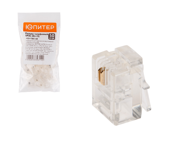 Разъем (джек) телефонный 6P2C (50 шт.) ЮПИТЕР