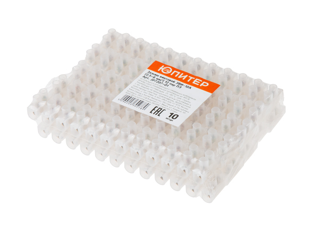 Зажим винтовой ЗВИ-10А 12 пар ПЭ (10 шт) Юпитер (клеммная колодка, 10 мм2) (ЮПИТЕР)
