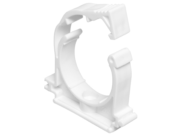 Кронштейн пластиковый c фиксатором 20 мм предназначен для крепления труб. Благодаря наличию фиксатора кронштейн надежно фиксирует трубу, исключая ее выпадение даже при высокой температуре в системах отопления.