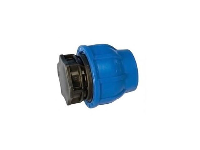 Заглушка компрессионная концевая для труб ПНД (полиэтилена низкого давления). Монтаж системы технического трубопровода либо трубопровода для питьевой воды довольно простой. Труба ПНД вставляется через втулку запрессовывающую диаметром 50 мм в компрессионную заглушку, фиксируется накидным кольцом, гайка плотно закручивается. Для того, чтобы система была герметична, для защиты системы от протекания, используется уплотнительное кольцо.