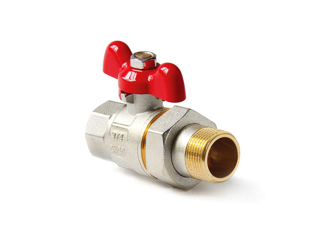 Кран шаровый 1 1/4" нар.-вн. бабочка (со сгоном) никелир. PRO AQUA