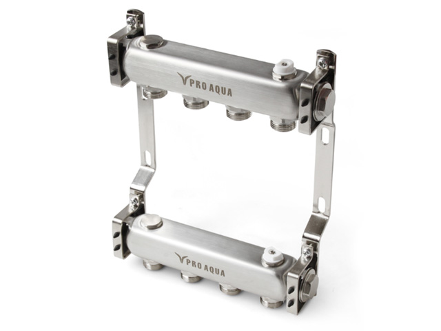 Гребенка для отопления Pro Aqua - это эффективное решение для организации системы отопления. Блоки произведены из нержавеющей стали марки AISI 304, которая является одним из самых экологичных материалов. Толщина стенки коллекторного блока Pro Aqua увеличена и составляет 1,6 мм, стандарт 1,5 мм. Коллекторные блоки имеют увеличенное проходное сечение 40x40.7 мм (16.28 см2) и обладают повышенной пропускной способностью.