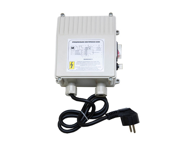 Пусковая коробка применяется для обеспечения надежной работы однофазного двигателя скважинного насоса без встроенного конденсатора. Без ее наличия срок службы двигателя значительно уменьшается. В состав пусковой коробки входит конденсатор, необходимый для пуска однофазного двигателя, и тепловое реле, обеспечивающее защиту двигателя от токовой перегрузки.