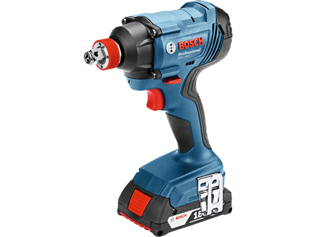 Аккум. ударный гайковерт BOSCH GDX 180-LI в чем. (18.0 В, 2 акк., 3.0 А/ч Li-Ion, посадочн. квадрат 1/2, внутр. шестигр. 1/4 ", 180 Нм, вес 1.7 кг)