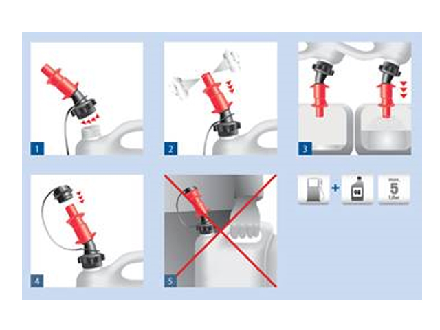 3. Вставьте насадку в отверстие резервуара и нажмите ее вниз, чтобы открыть систему для слива топлива