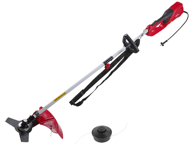 Электрический триммер предназначен для использования на приусадебных участках средней площади.  Оснащен эргономичной прорезиненной рукояткой и удобным снятием блокировки пуска. Установлена система плавного пуска. Предусмотрена возможность эксплуатации как с леской, так и с трехлопастным ножом. Производительность кошения составит примерно 3 сотки в час.