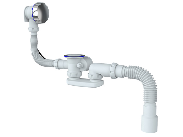 Сифон для ванны и глубокого поддона автомат с переливом и гибким соединением д.40х 40/50, Unicorn (Сифон 1 1/2" для ванны с выпуском и переливом)