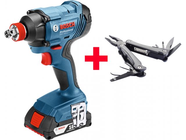 Аккум. ударный гайковерт BOSCH GDX 180-LI в чем. + мультитул Swiss Peak (18.0 В, 2 акк., 3.0 А/ч Li-Ion, посадочн. квадрат 1/2, внутр. шестигр. 1/4 ",