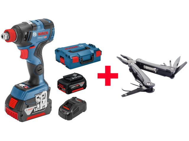 Аккум. ударный гайковерт BOSCH GDX 18V-200 C L-BOXX + мультитул Swiss Peak (18.0 В, 2 акк., 5.0 А/ч Li-Ion, посадочн. квадрат 1/2, внутр. шестигр. 1/4