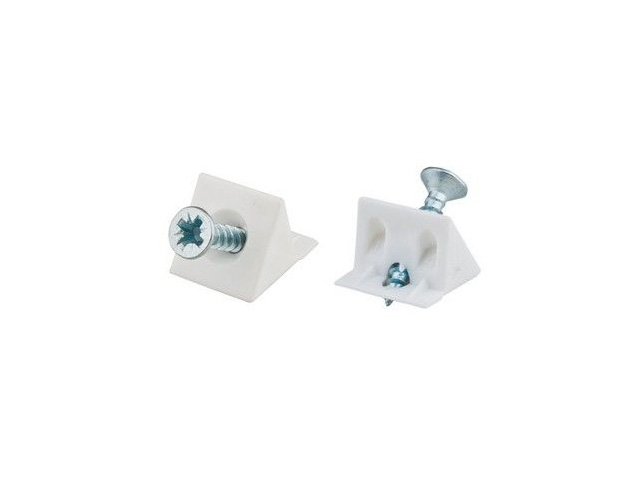 Пластиковый фиксатор с саморезом используется для крепления задней стенки из ДВП, тем самым предотвращаяя ее прогиб. Предустановленный в уголок саморез не потеряется на производстве.