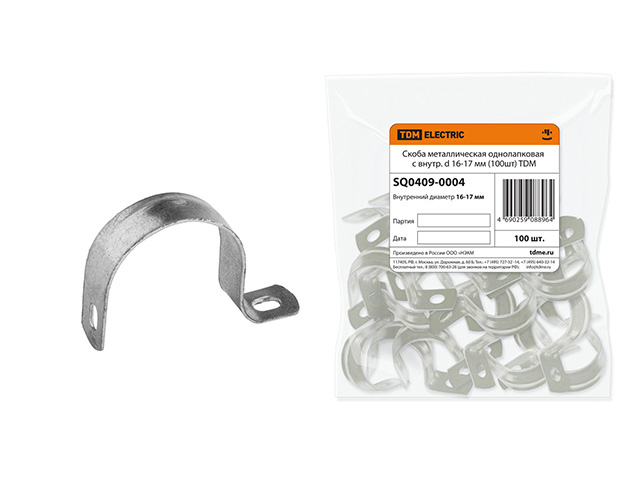 Скоба металлическая однолапковая с внутр. d 14-15 мм (уп 100шт) TDM купить в Минске: