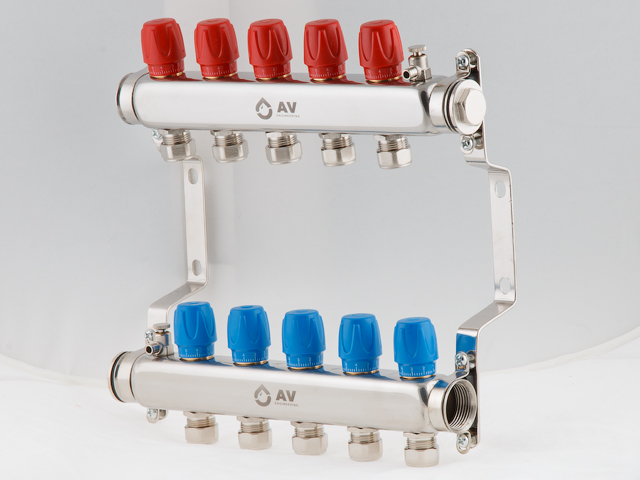Коллекторная группа AVE135, 5 вых. AV Engineering (Для водоснабжения и отопления (радиаторы). Не для теплого пола)