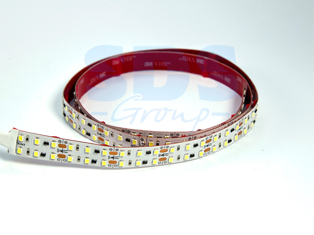 Светодиодная лента - гибкая лента на самоклеящейся основе, на которой установлены светодиоды. Может использоваться в подсветке интерьеров, изготовлении световых рекламных конструкций и пр. Работает от напряжения 24 В, поэтому при подключении к обычной бытовой сети 220 В потребуется источник питания 24 В. Данная лента имеет повышенную плотность установки светодиодов. Светодиоды расположены на ленте в 2 ряда, что обеспечивает световой поток 1550 Лм/м.