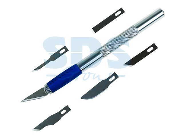 Скальпель со сменными лезвиями 7 предметов REXANT отлично подходит для художественных и дизайнерских работ (декорирование резными элементами, декупаж, квиллинг, скрапбукинг, пэчворк и многое другое). Лезвия в наборе отлично режут различные материалы: бумагу, картон, металлическую фольгу, древесину, пластик, ткань и кожу. Благодаря цанговому зажиму ножа, обеспечивается крепкая фиксация лезвий и их быстрая смена. Лезвие ножа изготовлено из высококачественной инструментальной стали.