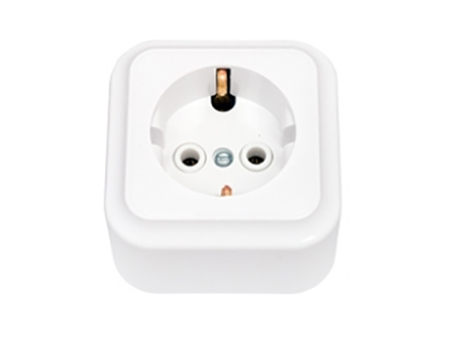 Розетка 1-ая (открытая, с/з) белая, Пралеска, Bylectrica