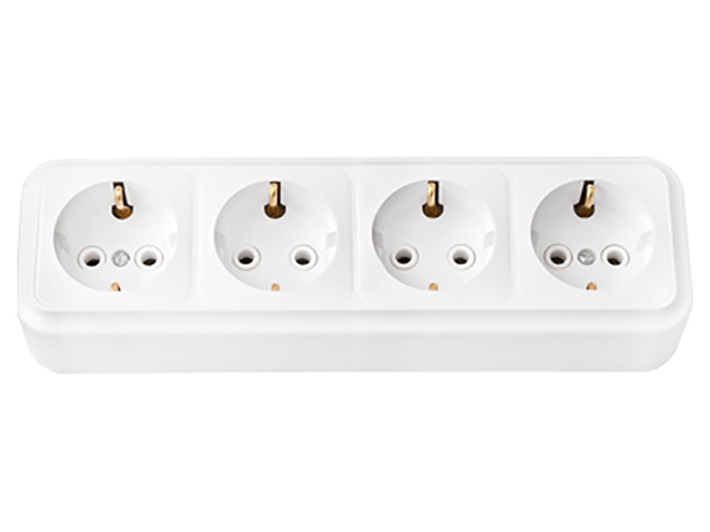 Розетка 4-ая (открытая, с/з) белая, Пралеска, Bylectrica