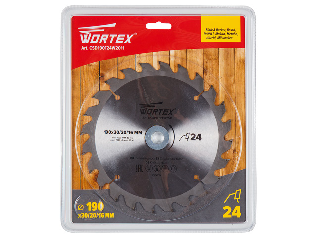 Диск пильный 210х30 мм 24 зуб. по дереву WORTEX (твердоспл. зуб) купить в Минске: