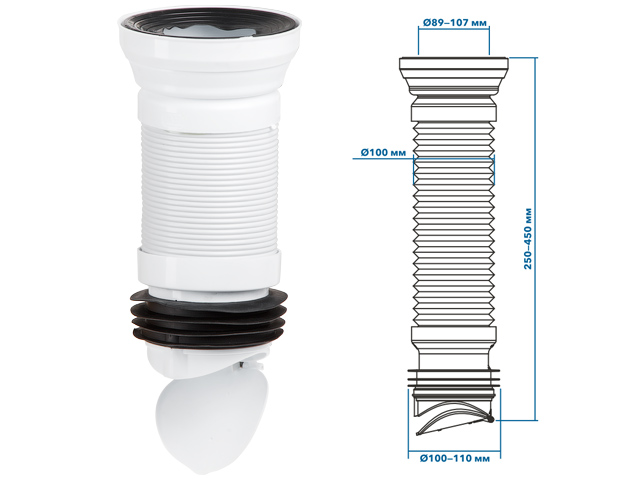 Удлинитель гибкий для унитаза, армированный 450 мм, с клапаном обратного хода, AV Engineering (Гофра для унитаза с обратным клапаном)