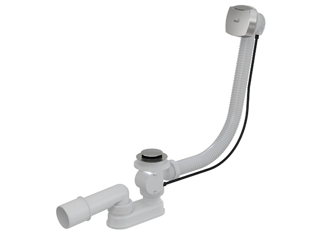 Сифон для ванны автомат комплект металл с квадратной накладкой, Alcaplast
