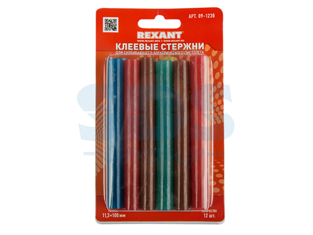 Клеевые стержни d=11,3 мм, L=100 мм, цветные (упак. 12 шт.) (блистер) REXANT