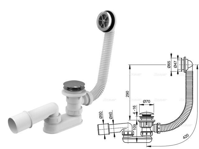 Сифон для душевого поддона CLICK/CLACK, металл, Alcaplast купить в Минске: