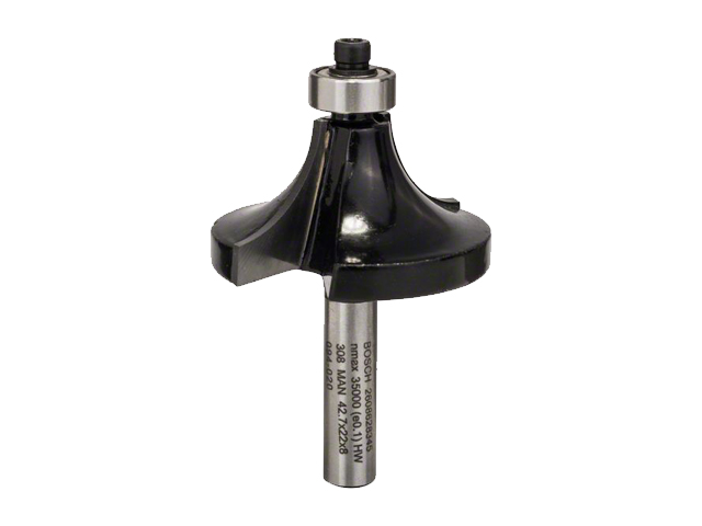 Для скругления кромок оконных рам, шкафов, столешниц, полок и каминных обрамленийШарикоподшипник для простого ведения прямо на заготовке без шаблонаКарнизная фреза Bosch для чистых закруглённых кромок