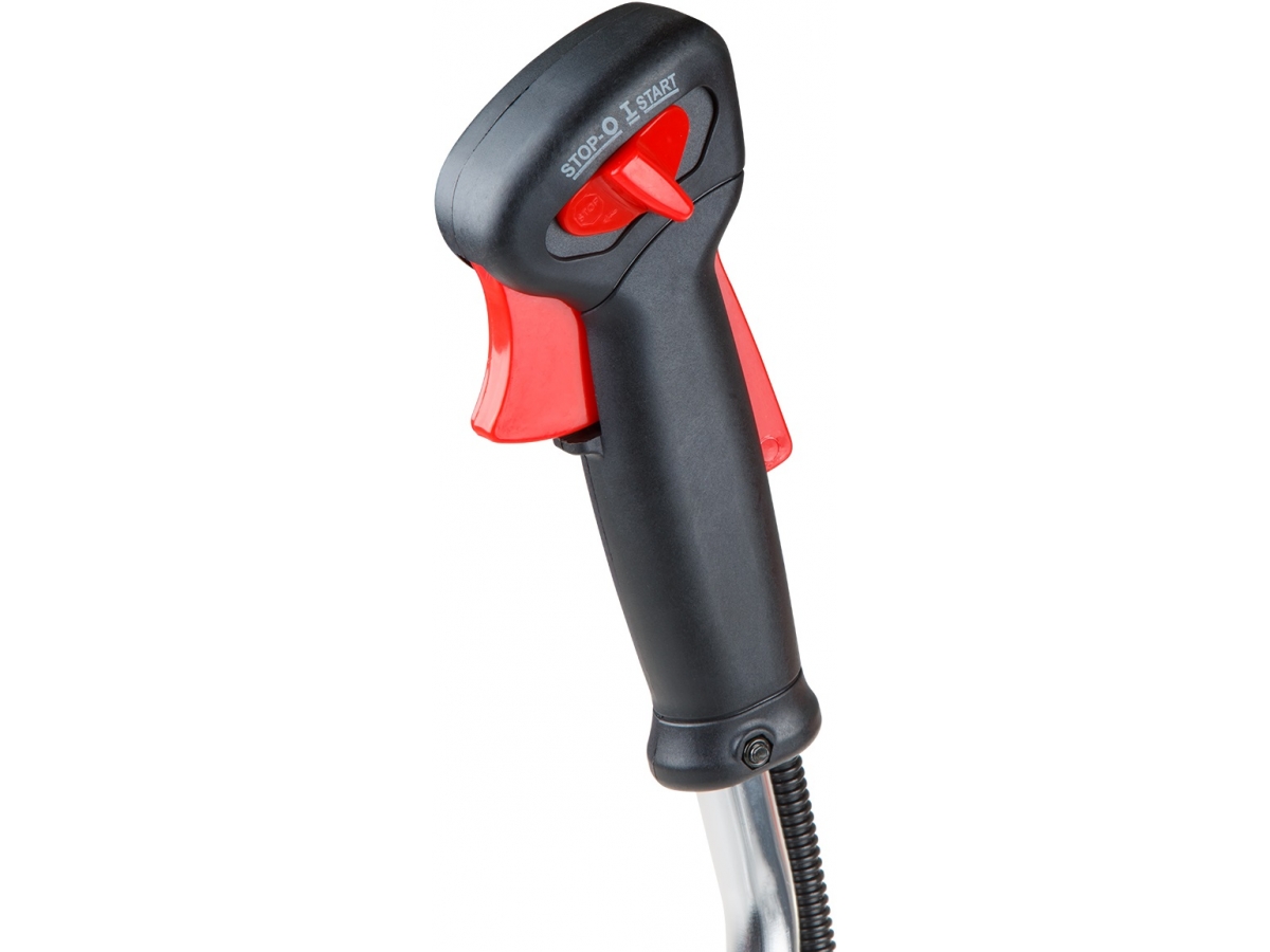 Удобная и эргономичная рукоятка триммера изготовлена в виде велосипедного руля и может устанавливаться в различных положениях, это обеспечивает максимальную управляемость и уменьшает нагрузку на опорно-двигательный аппарат оператора. Блок управления находится на одной ручке, кнопки доступны и располагаются точно под пальцами оператора.