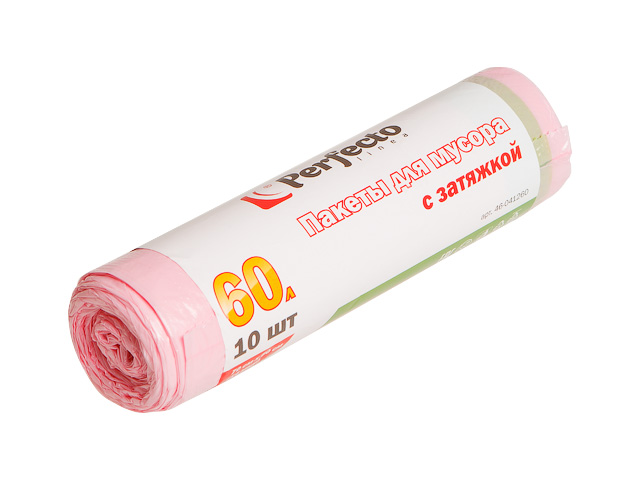 Пакеты для мусора с затяжкой, 60 л, 10 шт., PERFECTO LINEA (Тип дна: прямое)