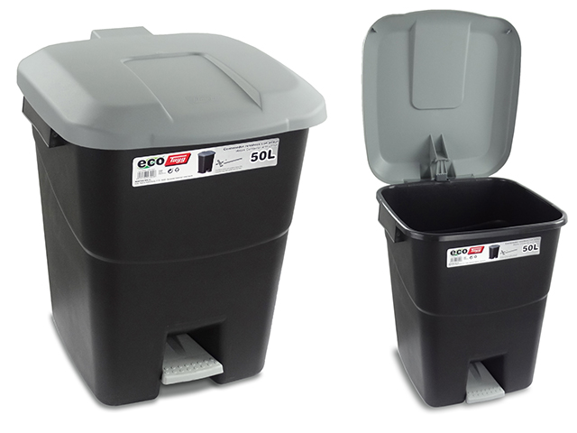 Контейнер для мусора пластик. 50л с педалью (серая крышка) TAYG