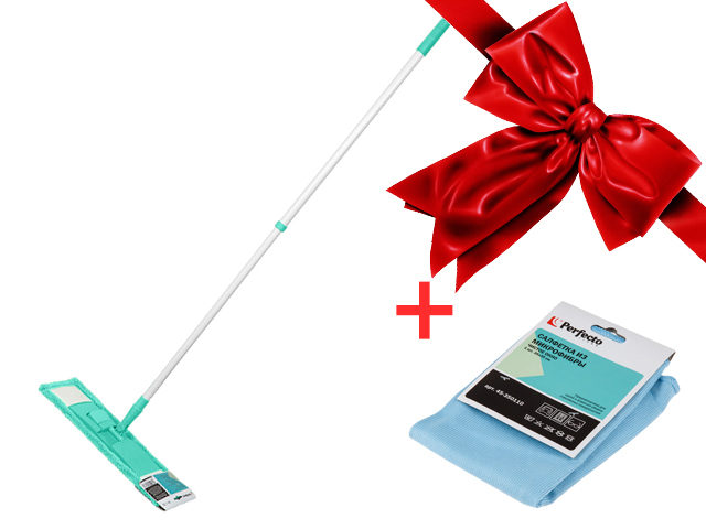 Швабра для пола с насадкой из микрофибры, бирюзовая + Салфетка из микрофиб. Чистое окно (45-350110) (Промо) (PERFECTO LINEA)