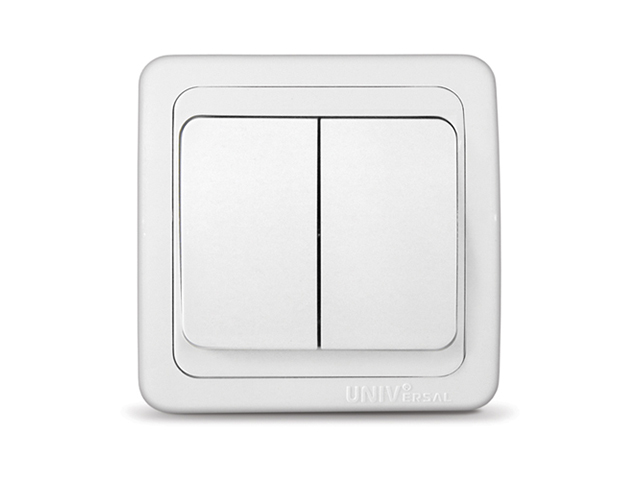 Выключатель 2 клав. (скрытый) белый, Валери, UNIVersal