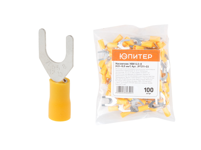 Наконечник НВИ 6,0-8 вилка (4,0 - 6,0 мм2) (100 шт) Юпитер (ЮПИТЕР)