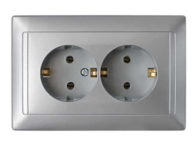 Розетка 2-ая (скрытая, с/з) серебро, Стиль, Bylectrica