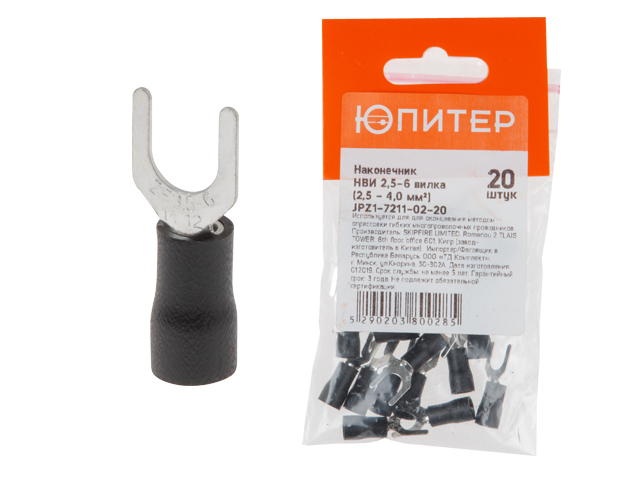 Наконечник НВИ 2,5-6 вилка (2,5 - 4,0 мм2) (20 шт) Юпитер (ЮПИТЕР)