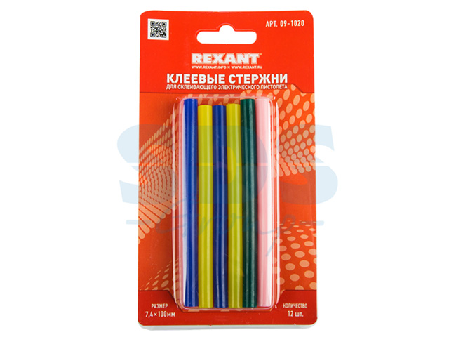 Клеевые стержни d=7,4 мм, L=100 мм, цветные (упак. 12 шт.) (блистер) REXANT