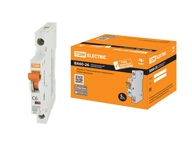 Автоматич. выключатель ВА60-26-14 1P 6А 4,5кА х-ка С компакт TDM