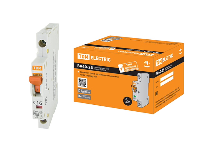 Автоматич. выключатель ВА60-26-14 1P 16А 4,5кА х-ка С компакт TDM